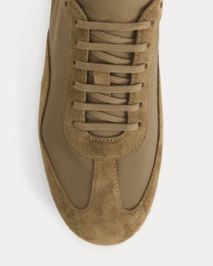 With a ballet scrunch detail on the heel. this vintage-inspired runner has a slim silhouette that can be worn with practically everything. Crafted with an Italian suede and recycled nylon upper. plus a rubber outsole for flexibility and durability. It’s a pair that’ll be a mainstay in your rotation. If you’re in between sizes. consider sizing up half a size.