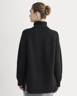 Reach a new level of cozy—without the bulk. in this easy-to-throw-on oversized turtleneck sweater. Hitting just below the low hip. it has cocooning comfort built in. Oh-so plush and warm. it’s made with our ribbed. responsibly-sourced wool and recycled cashmere blend. Wear it with straight or wide-leg jeans. tailored pants. a midi skirt. or whatever you’re feeling. You might just never want to take this sweater off.