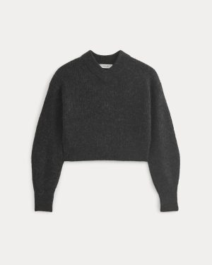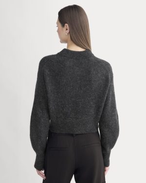 Cropped Cocoon Sweater in Alpaca | Heathered Black