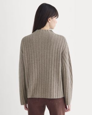 Made from a blend of recycled cashmere and certified responsibly-sourced wool. this sweater is equal parts stylish and snuggly. Cozy funnel neck with a dropped shoulder and a fit that straddles between relaxed and oversized. Rib detailing creates a V-pattern along the bust and outer sleeve for an extra special touch. Easy. yet elevated.