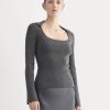 Its sweetheart neckline keeps it fresh and fun. while ribbing details around the bust and diagonal chevron ribbing along the sides give it some texture play. Made with our sweater blend of certified organic cotton. Naia™ Renew. and FSC-certified viscose. it holds you in and always keeps its shape. Wear it solo as a statement top or layer under a sheer shirt or blazer.