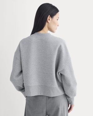 We upped the cozy factor on our best-selling crew with an added layer of snuggly soft fleece. This sweatshirt features an oversized. cropped fit and a dropped shoulder. on-seam stitched detailing. and darted sleeves. Made from premium cotton. think a softer. thicker. warmer material. with a relaxed fit—perfect for lounging around or running errands on cooler days.
