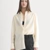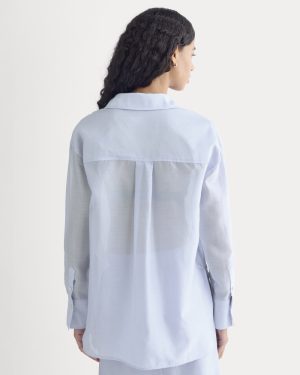 We took a classic oversized shirt with all the signature moves—collar. button placket. cuffs. and shirttail hem. and gave it a fresh perspective in sheer organza. Made with our better-for-you blend of OCS-certified organic cotton and silk. it has just the right amount of lightness with a little structure. Your new go-to luxe layer. style it over a cami or bra top. with tailored trousers. curve jeans. or a slip dress.