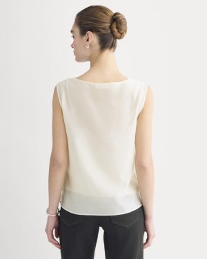 Bringing a little luxe layering to your look. this organza muscle top features a sheer layer over a removable slip cami. Made with our better-for-you blend of OCS-certified organic cotton and silk. it has just the right amount of lightness with a little structure. Wear together. style as separate pieces. it’s up for it all.