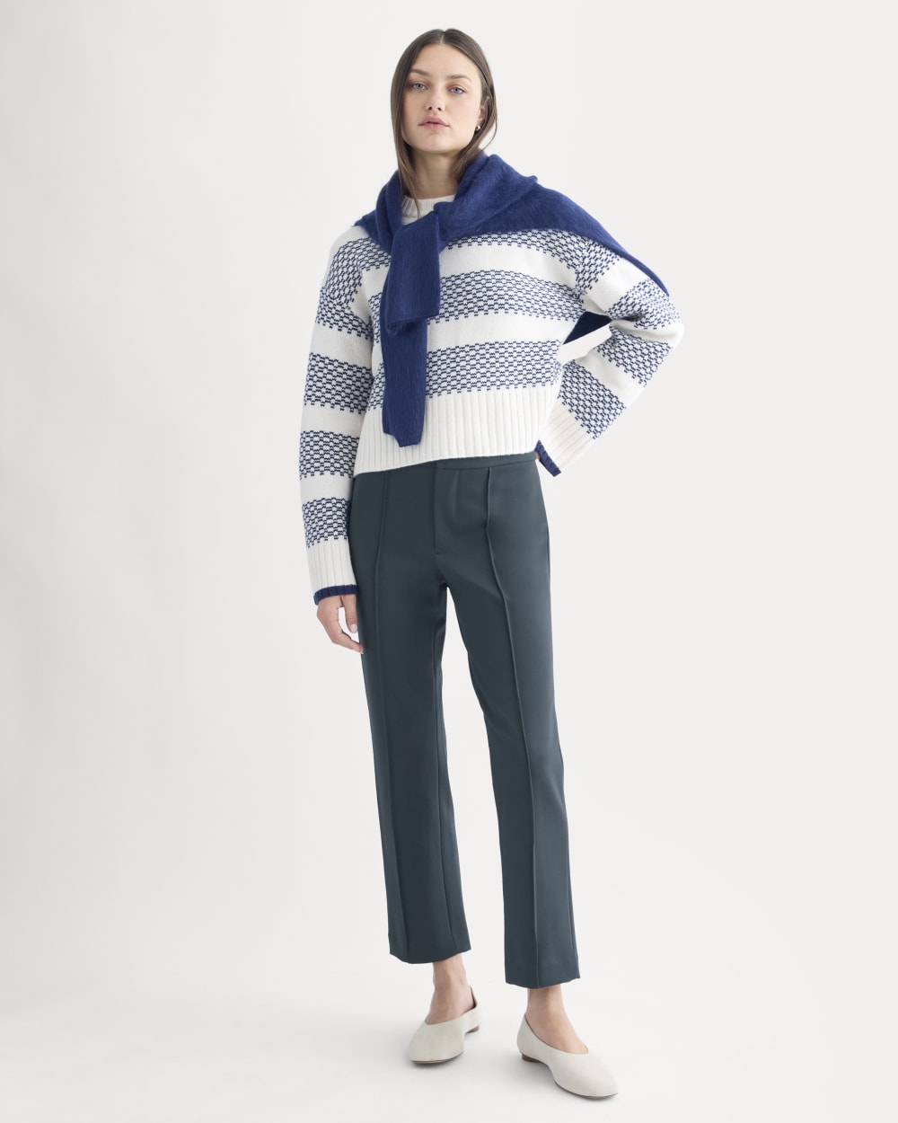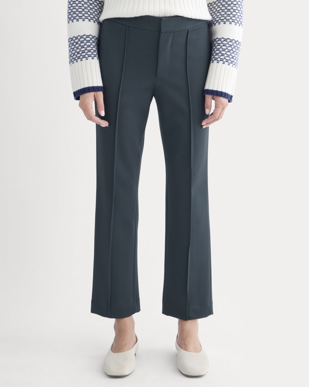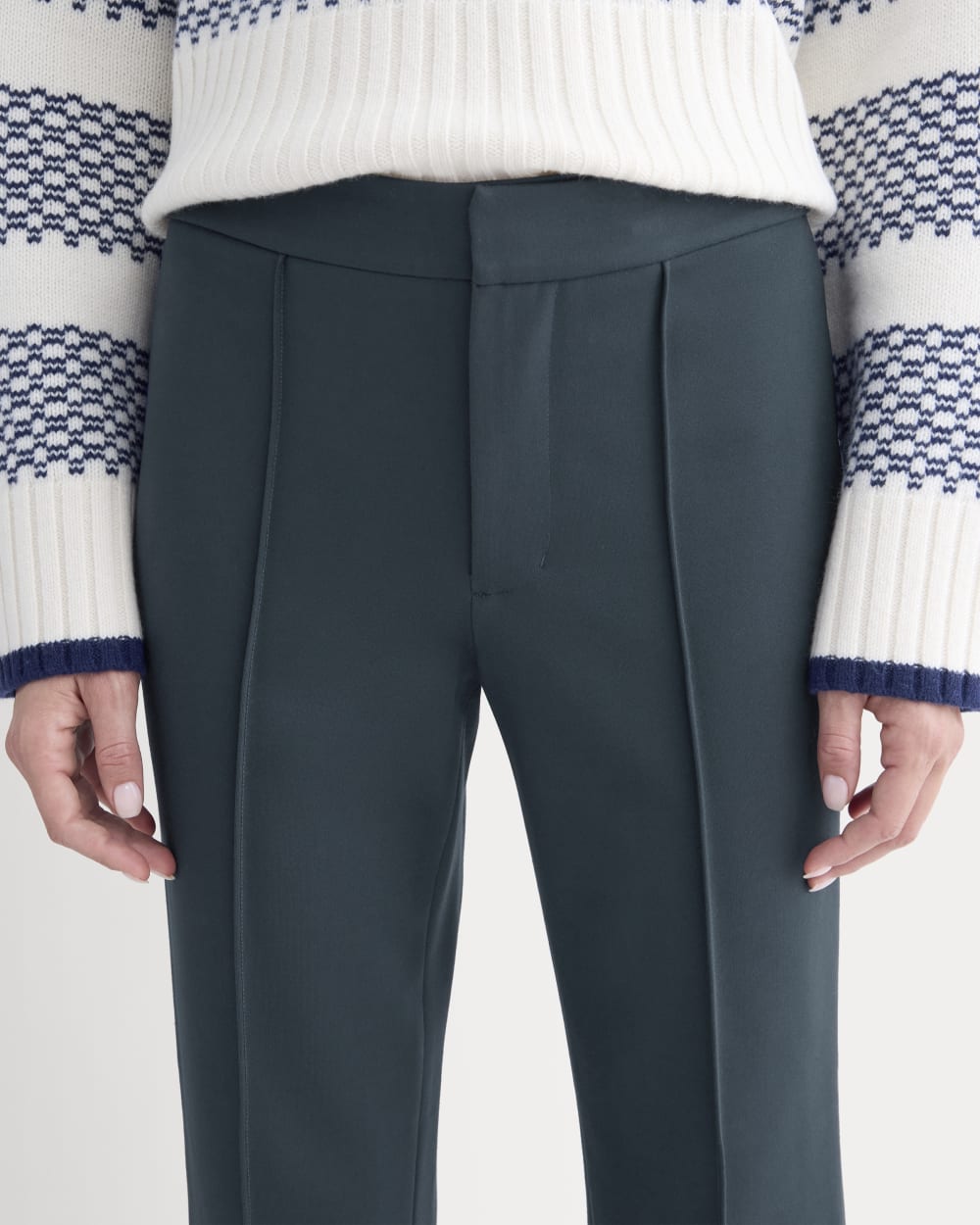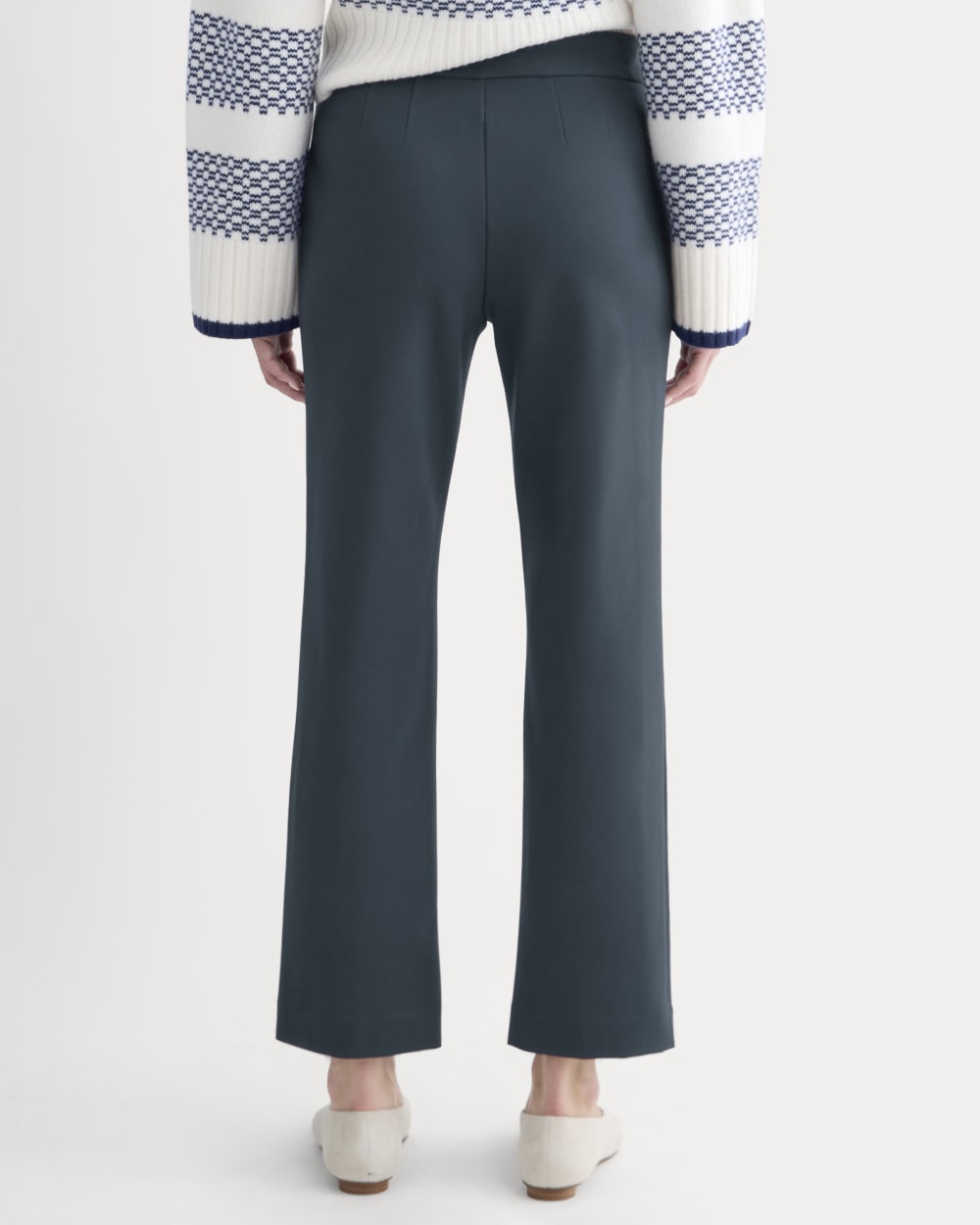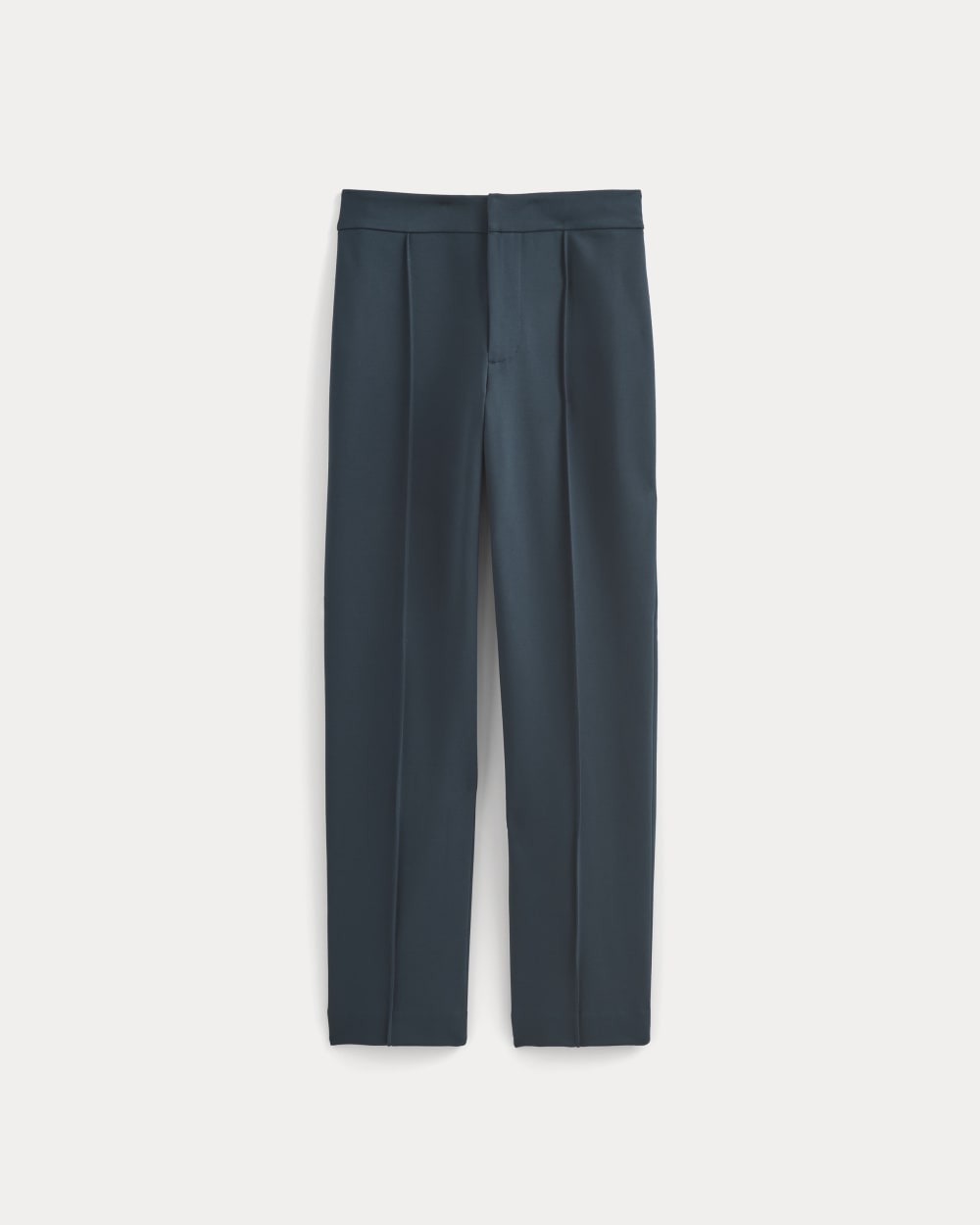 A slim silhouette with elongating pintucks down the front of the leg. darts at the back waist. Made from a LENZING™ ECOVERO™ viscose blend—so expect this pair to hold you in all day long with its heavier weight while still being super comfortable.