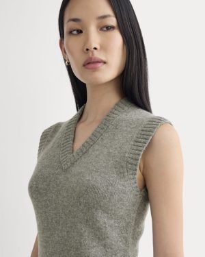 With a narrow V-neck and fitted. sleeveless silhouette. we’ve taken the classic sweater-vest and made it into a mini dress. Featuring rib detailing along the center back. it’s made with our RWS-certified Extrafine Merino wool. for a warm. cozy feel. Throw a jacket over it for fall. or layer it over a shirt and knee-high boots when the temps drop.