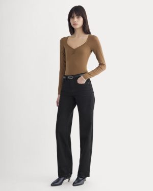 This square-neck top has a romantic twist with a ruched sweetheart neckline and oh-so slight sheerness. Perfect for that dimly-lit hotspot. Made from a blend of TENCEL™ Lyocell and wool. Better for the planet and date night.