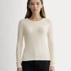 The ’90s Rib Tee features a scallop-weave neckline and sleeve detailing in a playfully cropped silhouette. Revealing just a hint of midriff. its textured fine-rib fabric—made of organic cotton with a touch of elastane. gives it that figure-skimming fit. Pairing well with your favorite high-waist jeans or pants for that perfect on-camera moment.