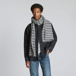 The Alpaca Patterned Scarf | Light Heather Grey / Dark Charcoal Buffalo Check