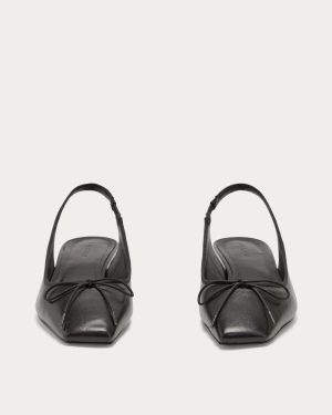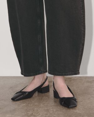Blending the poise and grace of a ballet flat with an edgy square toe. it features a neat bow. slingback strap. and a low block heel. Treat them just like you would your flats and wear them with any look for that low-key polish.