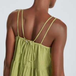 The Billow Cami features a square neckline and double spaghetti straps. subtly accenting the shoulders. Made of 100% cotton. its light. billowy silhouette makes it a cool and elevated option all summer long. Effortlessly versatile. style it with shorts or high-waist pants and play with proportions.