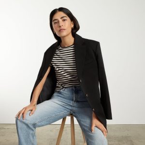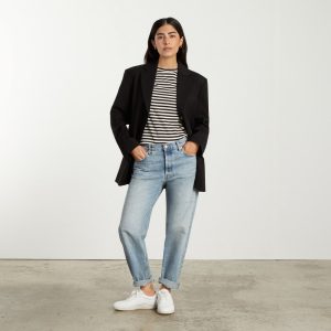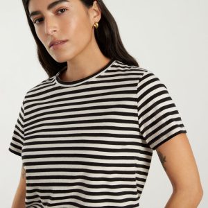 The Box-Cut Tee in Essential Cotton | Sandstone / Black | No Pocket