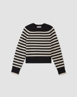 Our classic boxy fit—cropped with ribbed detailing—now in an updated blend of GRS-certified recycled cashmere and GCS-certified responsible cashmere. so you can wear this timeless staple on repeat for years and years. Fun Fact: We created a unique blend of GRS-certified recycled cashmere and Good Cashmere Standard®-certified cashmere to give you all the beauty of traditional cashmere with a lower environmental footprint. On one side. using recycled cashmere can lower the raw material carbon emissions of our garments by over 90%. when compared to virgin cashmere. On the other side. sourcing responsible cashmere—certified through The Good Cashmere Standard® by AbTF—ensures the welfare of cashmere goats. protects the natural resources where they graze. and improves the working conditions of cashmere farmers. It’s the best of both worlds.
