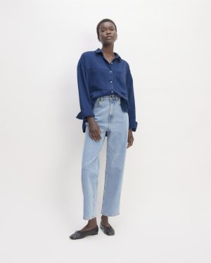 Our best-selling Boxy Oxford now in a buttery soft. 100% TENCEL™ Lyocell fabric. With a classic point collar. dropped shoulders. a clean button front. oversized patch pockets. and a relaxed boxy shape. Polish it up with trousers and heels. or dress it down with jeans and sneakers for a casual-yet-put-together look. Known for its lightness and versatility. TENCEL™ Lyocell is a man-made cellulosic fiber extracted from PEFC and FSC-certified responsible wood sources. It offers the same exceptional softness as conventional cotton while using less energy and water in the production process.