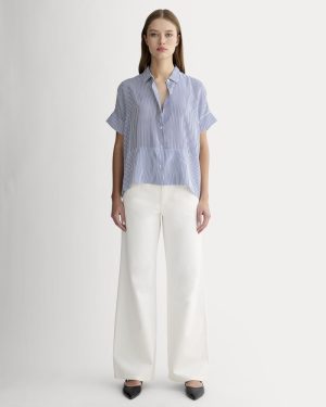 Be the first to review “The Boxy Shirt in Washable Silk | Blue / White” Cancel reply