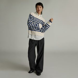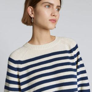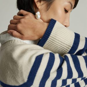 The Cashmere Boxy Crew | Bright Navy / Bone