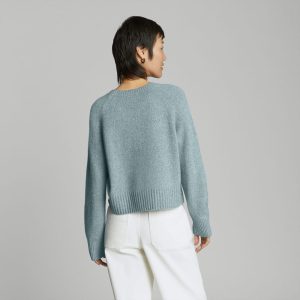 Made from a premium blend of recycled Italian cashmere and wool. The ReCashmere® Boxy Crew Sweater features a slightly cropped. boxy fit with a ribbed neckline. cuffs. and hem—it’s luxury. reimagined. We love it with anything high-waisted and a subtle heel. Soft. Luxurious. Warm. All the beauty of cashmere—with over 90% less raw material carbon emissions.