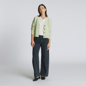 Crafted from a rich blend of recycled Italian cashmere and wool. The Cashmere Cardigan features a deep V neckline. three-button front. and relaxed fit. Pair with your favorite Way-High Pants and pointed-toe shoes for a subtly sophisticated look. Soft. Luxurious. Warm. All the beauty of cashmere—with over 90% less raw material carbon emissions.