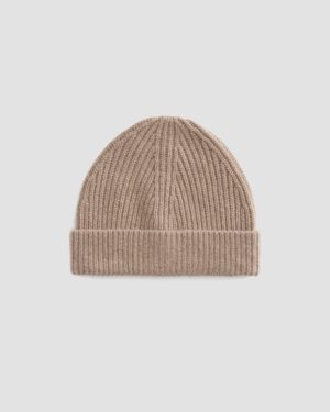 The Cashmere Fine Rib Beanie | Heathered Woodsmoke