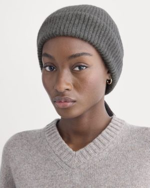 The Cashmere Ribbed Beanie | Heather Charcoal