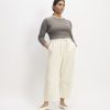 Our Chino in Buttersoft is a high-waisted pant crafted in a buttery soft. 100% TENCEL™ Lyocell fabric. It features a cool curved leg (similar to the Utility Barrel Pant) and asymmetrical back pockets: one with a button-back flap pocket and one with a slip pocket. These pants are slouchy. so if you want a slimmer fit. try sizing down.