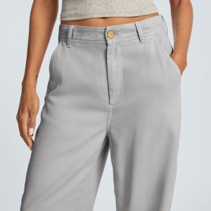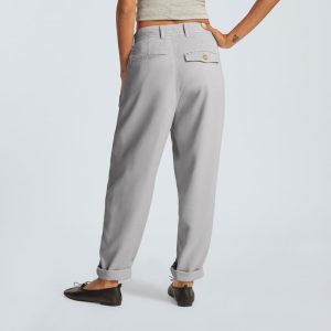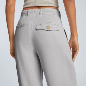 Our Chino in Buttersoft is a high-waisted pant crafted in a buttery soft. 100% TENCEL™ Lyocell fabric. It features a cool curved leg (similar to the Utility Barrel Pant) and asymmetrical back pockets: one with a button-back flap pocket and one with a slip pocket. These pants are slouchy. so if you want a slimmer fit. try sizing down.