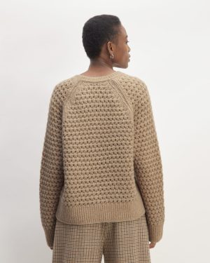 Featuring a new honeycomb texture stitch in our lightweight. ultra-cozy and chunky yarn. the Cloud Oversized Textured Crew has a relaxed fit with raglan arms. Pair it with our signature high-waist denim or over the Satin Square-Neck Slip Dress.