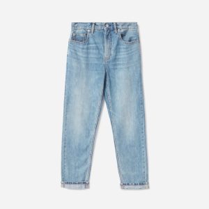 A straight. column-leg silhouette. this mid-rise jean hits just at the top of the foot—perfect for showing off a chic shoe pairing. Made with our certified organic cotton denim. it has just a touch of stretch for comfort. A goes-with-everything jean you’ll love to wear. just add a white shirt and ballet pump for an instant vibe.