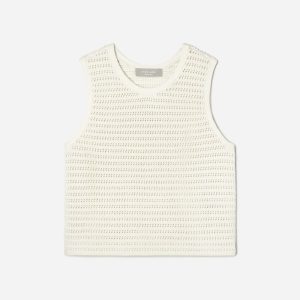 The Crochet Knit Cami is made of 100% organic cotton and features a sleeveless. relaxed fit with open stitch detailing. and a straight hem. Pair it with the Crochet Knit Skirt for the perfect summer set or your favorite denim bottoms.
