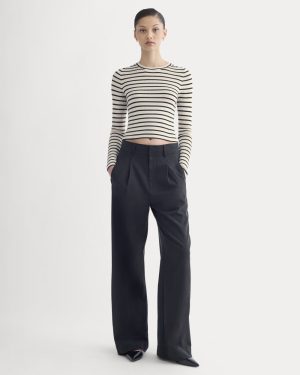 The Cropped Crew Top in Ultrafine Merino | Parchment / Black