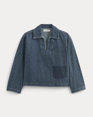 This playful popover top features an oversized fit. and is made with our lightweight non-stretch organic cotton denim. Wear it with head-to-toe denim or as a layering piece over knits when the temps drop.
