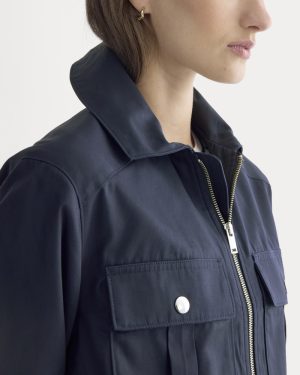 Featuring a cropped boxy fit. chest utility pockets. and shirt collar. it has adjustable tabs at the hem. Made with the same fabric as our Modern Trench—certified organic cotton. it’s durable. water repellent and resistant. and keeps its shape. The kind of jacket you can throw over your shoulders or layer up on when the weather is chilly. it’s versatile and brings a utilitarian-edge to any outfit.