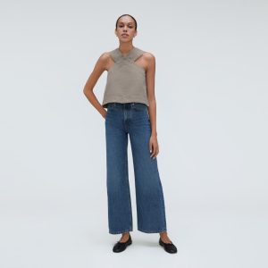 The Cross-Back Apron Top features wide cross-back straps. a medium weight canvas. and a cropped design with utilitarian details. Pair this top with your favorite shorts or denim for a fun and flirty summer look. Made of 100% organic cotton for all-day breathability and next level comfort.