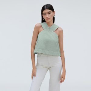 The Cross-Back Apron Top features wide cross-back straps. a medium weight canvas. and a cropped design with utilitarian details. Pair this top with your favorite shorts or denim for a fun and flirty summer look. Made of 100% organic cotton for all-day breathability and next level comfort.