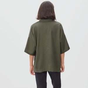 The Drapey Square Shirt features a classic point collar. dropped shoulders. a clean button front. a high-low hemline. and a relaxed. boxy shape. Plus. it’s made of smooth. drapey tencel. which means it’ll look polished even if you (literally) throw it on.