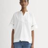 The Drapey Square Shirt features a classic point collar. dropped shoulders. a clean button front. a high-low hemline. and a relaxed. boxy shape. Plus. it’s made of smooth. drapey tencel. which means it’ll look polished even if you (literally) throw it on.