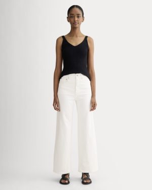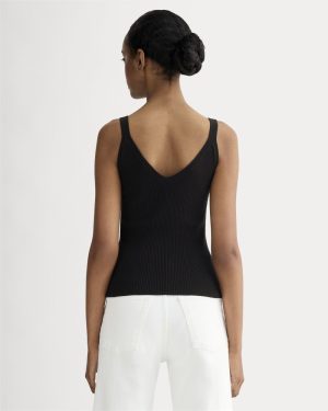 Featuring a front and back V-neck. it has-thin-bra-friendly straps for just the right amount of shoulder/collarbone reveal. Detailing at the waist gives it a fitted silhouette. perfect for topping your high or low-waisted pants and shorts. Made with a viscose and certified organic cotton blend. it’s soft. slinky. and ribbed. And if you love this style. it comes as a dress too for a midi-length take.