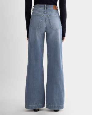 A vintage. denim dream come true. this piece is equal parts tailored and comfort. Plus. it’s made from our newest stretch organic cotton blend—for the perfect amount of flexibility and structure. so you can sit. stand. dance. or skate your way through the day. Due to an extra high rise. we suggest sizing up if you prefer more ease around the waist.