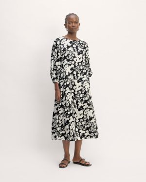 The Linen A-Line Midi Dress | Black / Bone Floral