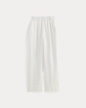 This piece features a mid rise. straight fit. regular length. and pull-on waistband. made with 100% linen.