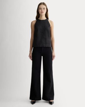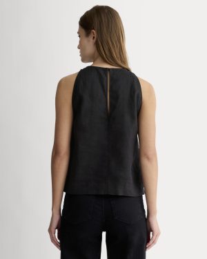 The Linen High-Neck Tank | Black