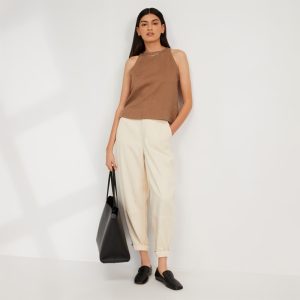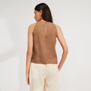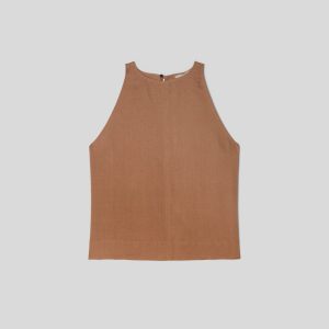 The Linen High-Neck Tank | Carob Brown