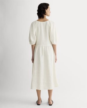 The Linen Oversized Puff-Sleeve Dress | Bone