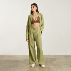 The Linen Way-High® Drape Pant | Leek