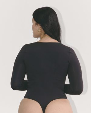 The Long-Sleeve Supima® Square-Neck Bodysuit | Black | Thong