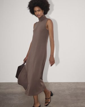 A dress that puts the versatile into style. its maxi length. folded turtleneck. sleeveless silhouette. and body-skimming fit is the kind of effortless you need in your life. Made with our Butterknit fabric. it has a super soft. drapey feel with a little sheen. Wear for work. brunch. nights out. or hangs at home. this dress just wants to make you look good doing it all.