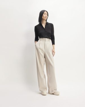 The Must-Have Shirt in Butterluxe is a relaxed fit button up that has an elegant drape. with shoulder seams that are slightly off the shoulder. Made with our light jersey knit blend of soft merino wool and TENCEL™ Lyocell with a touch of stretch. its silhouette is a little longer. making it a great layering piece to tuck-in or top pants and skirts. Just add heels to your look for instant elevation. Known for its lightness and versatility. TENCEL™ Lyocell is a man-made cellulosic fiber extracted from FSC and PEFC-certified responsible wood sources. Lenzing. the producer of TENCEL™ Lyocell. has achieved the highest rating from CanopyStyle for clean chemistry use and water recycling. Based on third-party certified lifecycle assessments. TENCEL™ Lyocell is over 50% less emissions intensive. compared to conventional lyocell.