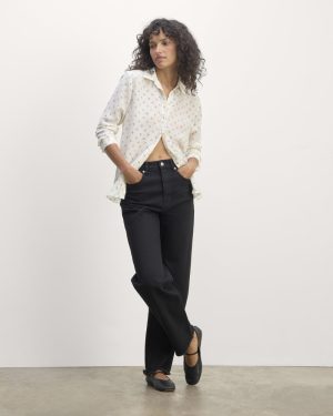 The Must-Have Shirt in Washable Silk | Bone / Black Square Dot