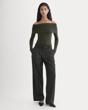 Featuring a relaxed fit. long sleeves. off the shoulder style with a fold-over neckline that can be draped in various ways. because who doesn’t love options? Made with our light jersey knit blend of soft merino wool and TENCEL™ Lyocell with a touch of stretch. its silhouette is a little longer. making it a great layering piece to tuck-in or top pants and skirts.