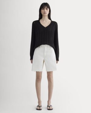 Featuring a slouchy shape. mid rise. knee-grazing cut. zip fly. and frayed hems. this inspired silhouette offers a cooler approach to your dad’s favorite staple.